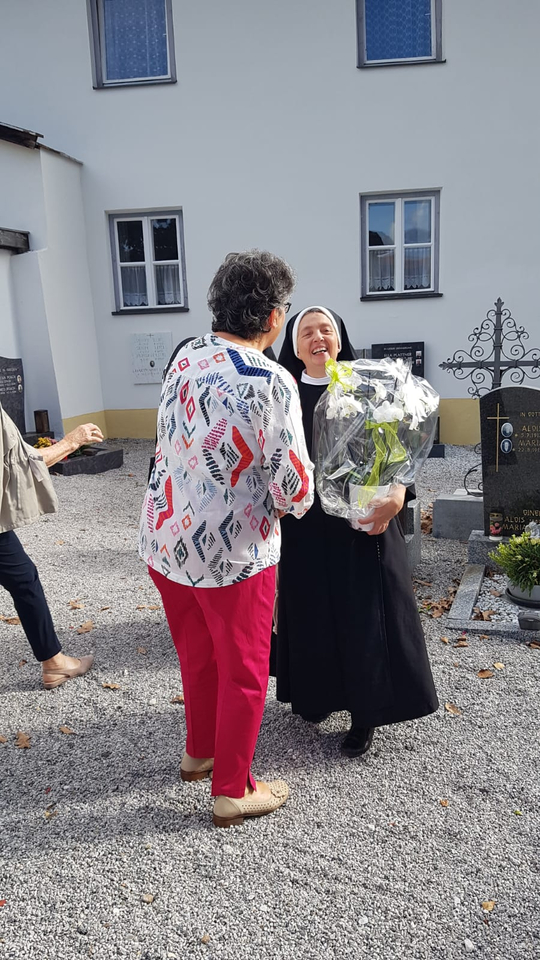 Sr. Klara Zuschmann ging als Kindergartenpädagogin Anfang September in Pension. Nun hat sie sich bereit erklärt, nach Thaur zu übersiedeln und die Schwestern dort in ihren verschiedenen Aufgaben zu unterstützen. Provinzoberin Sr. Gertrud Schernthanner begleitete sie. Sr. Klara wurde herzlich willkommen geheißen, sie wird dringend gebraucht. Wir wünschen ihr viel Freude mit ihren neuen Aufgaben und in ihrer neuen Gemeinschaft.