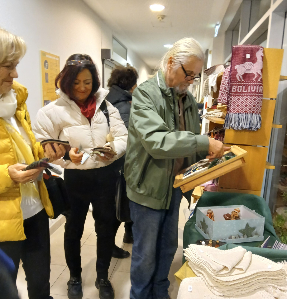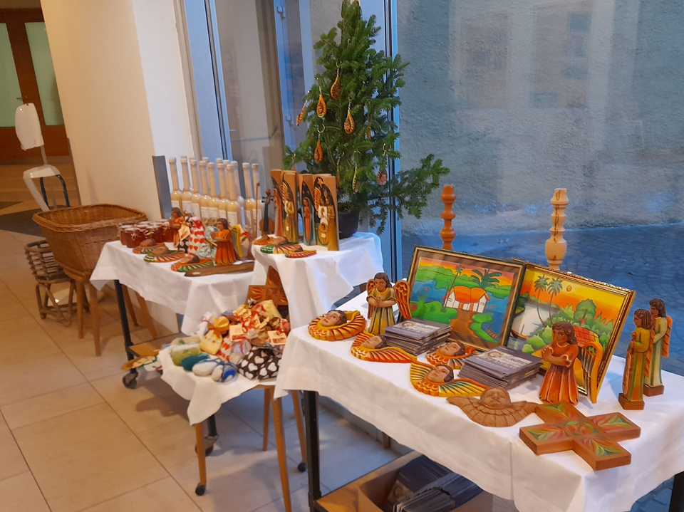 Nach dem Konzert blieben viele Besucher da, kauften Produkte aus Bolivien und ließen sich die bolivianischen Spezialitäten mit Apfelpunsch und Glühwein schmecken. Allen, die mitgeholfen haben, dass der Abend so gut gelang, sei ein großes Vergelt's Gott gesagt.