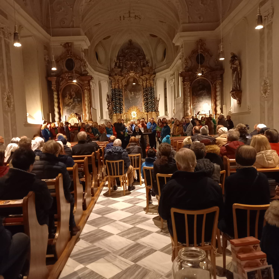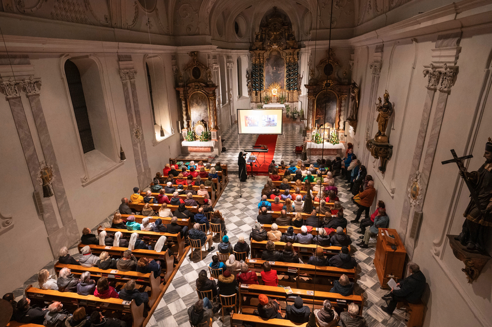 Wir Tertiarschwestern freuten uns sehr über die Zusage des Chors für ein Benefizkonzert zugunsten unserer Projekte in Bolivien. Wir luden unseren Bischof ein, der ein Grußwort sprach und auch der Bürgermeister von Hall Dr. Christian Margreiter und seine Frau Caroline kamen zur Vorstellung.