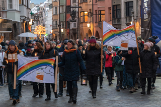 Am Weltfriedenstag luden Pax Christi Tirol und s`Egidio um 16 Uhr zur Annasäule in Innsbruck unter dem Motto „Gegen den Lärm der Kriege – Silent together for peace“ Vertreter:innen verschiedener Religionsgemeinschaften und auch des öffentlichen Lebens ein, diesen Tag gemeinsam zu begehen und so ein Zeichen zu setzen, dass der Wert des Friedens uns alle eint.
