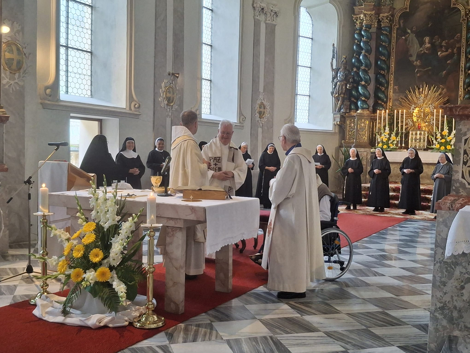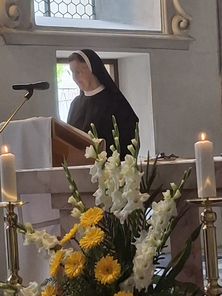 Ebenso begrüße ich alle Geistlichen, unsere Sr. Maria Theresia die heute unseren Chor leitet, die Organistin Sr. Maria Michaela und alle Schwestern.