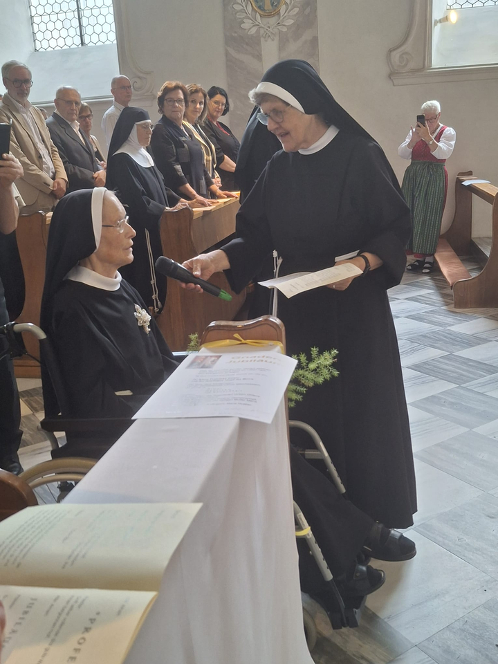 Besonders grüßen will ich unsere Jubilarinnen, die ihr Gnadenjubiläum und ihr Diamantenes Professjubiläum feiern. Im Namen aller Schwestern - danke ich - für die so lange Treue - Gott und der Gemeinschaft gegenüber. Damit wir wissen, wer uns heute zum Fest eingeladen hat, will ich die Schwestern einzeln vorstellen.